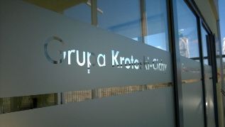 Folia dekoracyjna imitująca matowione, piaskowane szkło. Przeznaczona do ekspozycji grafiki na szybach okiennych, witrynach itp.